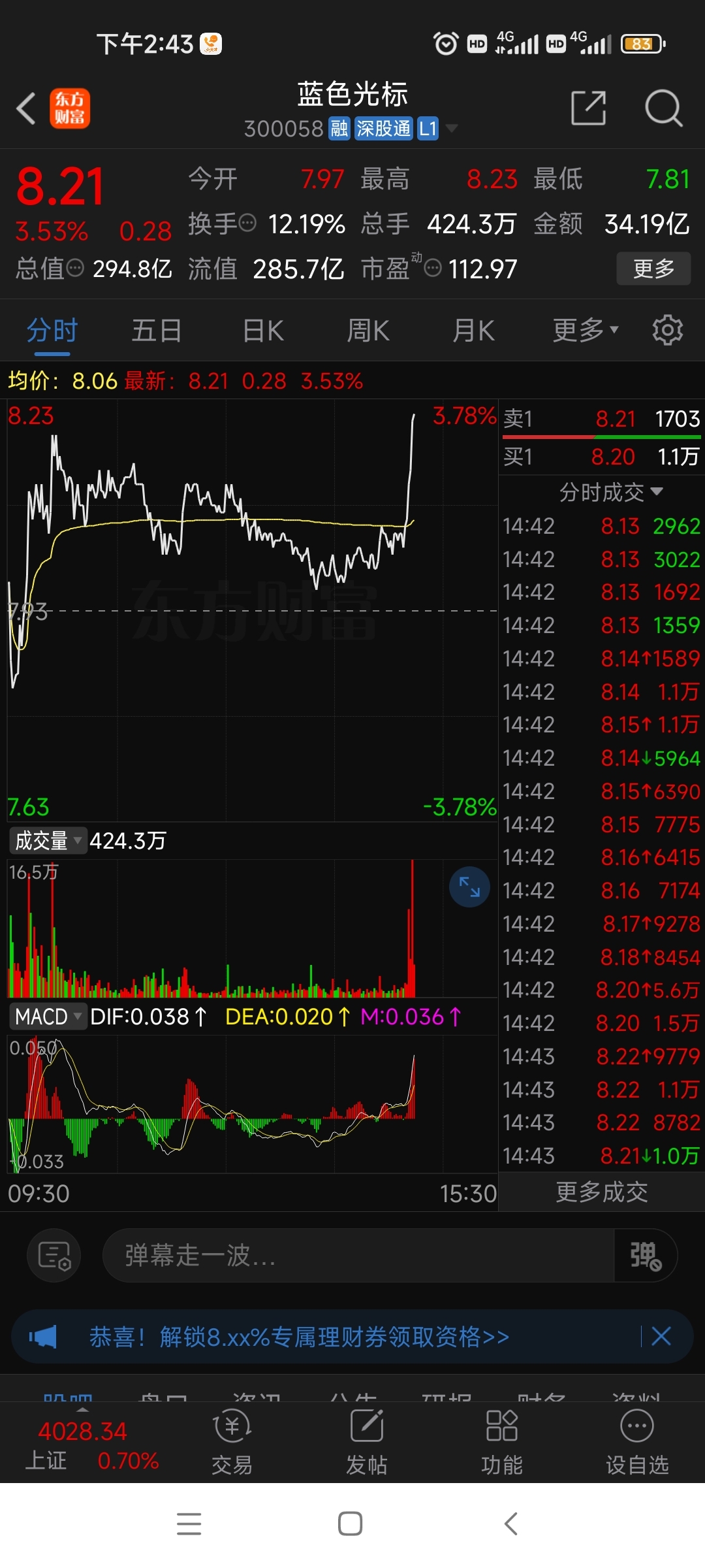 $易点天下(SZ301171)$ 你有标哥这成交早就涨停了