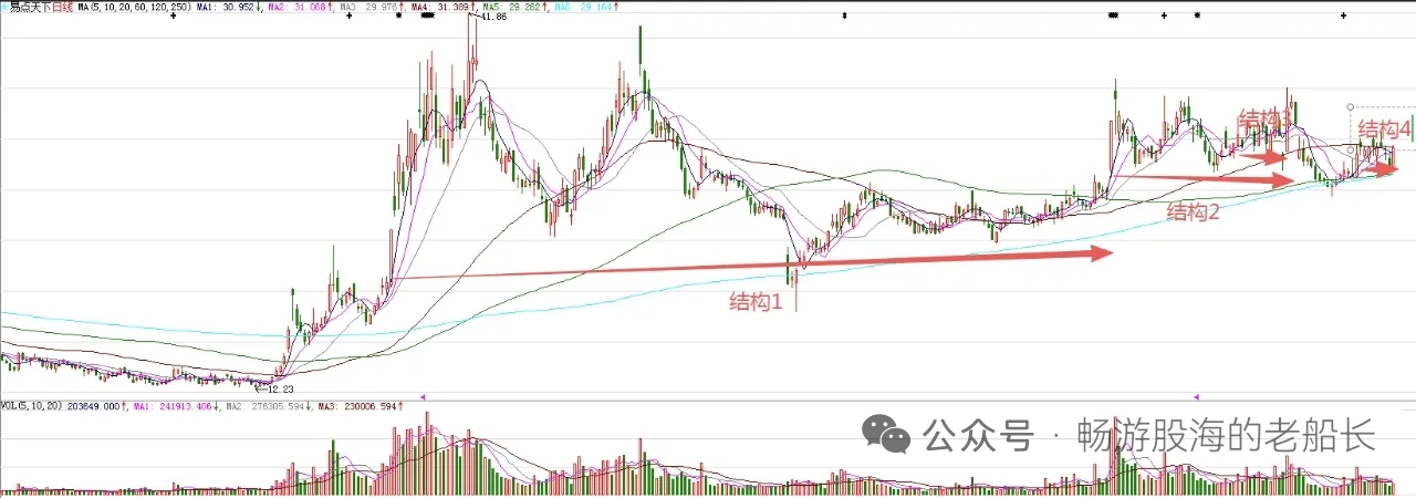 符合昨天分析的预期。尽管是尾盘突然拉升,但是收盘价依然非常好,直接实现了近期构筑的小型结构4的有效突破。图中标注的大型结构1突破,意味着股价处在比较大的上涨趋势。结构2和结构3是结构1突破后的回踩,意味着波段上涨不远了。今天,结构4的突破,意味着波段上涨随时会开始。
