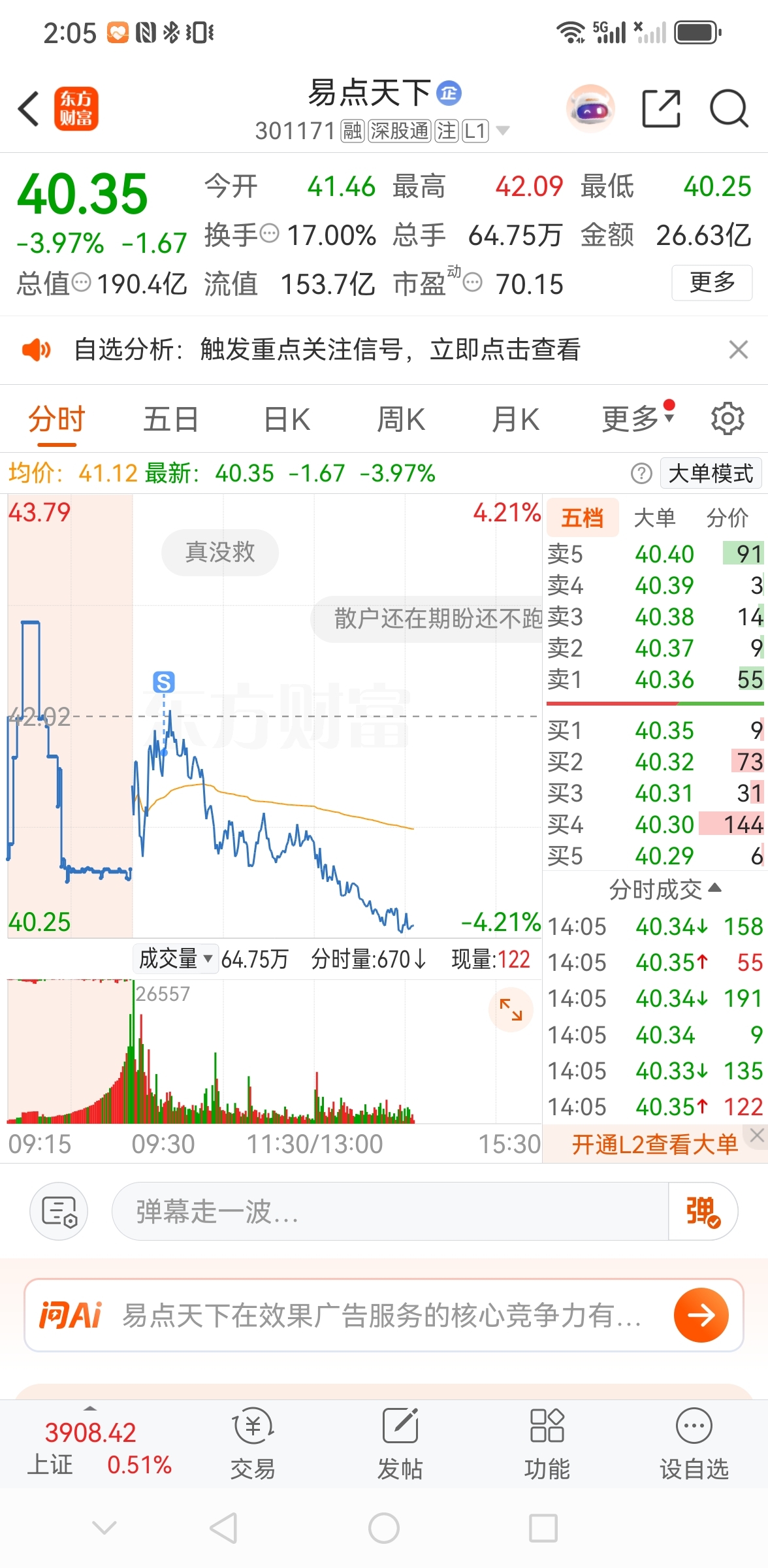 $易点天下(SZ301171)$ 幸亏老早割肉跑了,好险啊