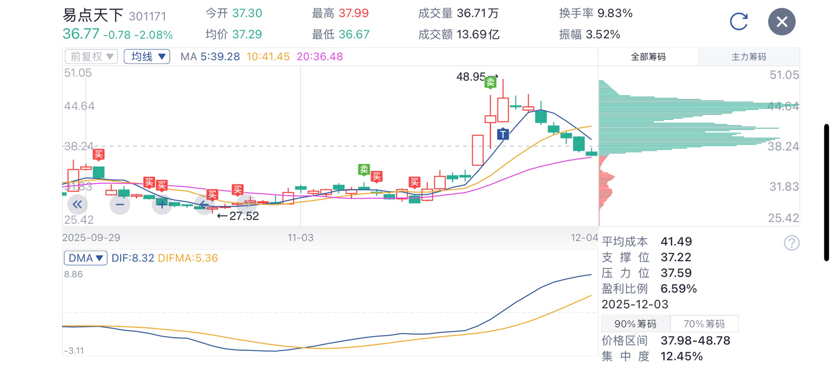 $易点天下(SZ301171)$ 还抱有幻想的散户,你们都不看筹码峰的嘛?上方全是套牢盘,会有主力进来拉升给你们解套?不逼出一批割肉盘是不会拉升的,只会磨死你。
