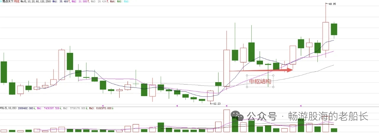 从月线级别的走势来看,本月处在调整周期。这个调整,是该级别走了五个有效的上涨周期后引发的,目标就是五单位月线,现在已经回踩到位。图中标注的大型结构突破,意味着股价处在比较大的上涨趋势。因此,距离新的波段上涨近在咫尺了。