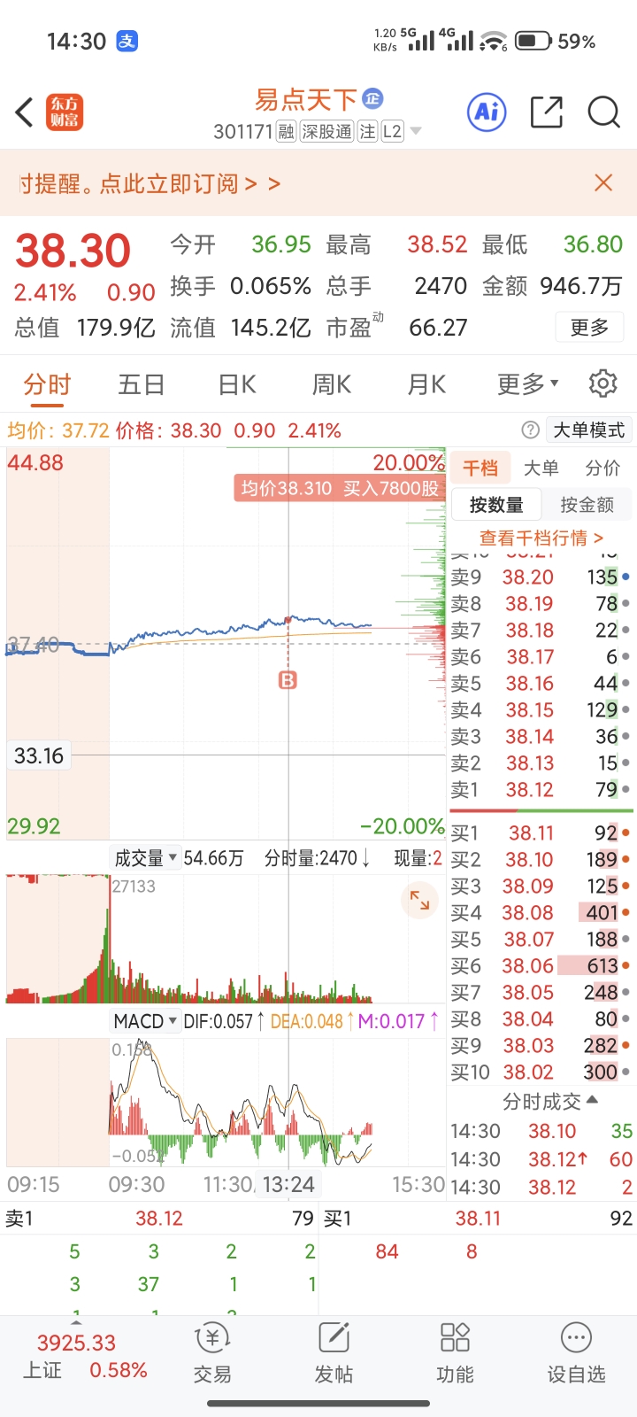 $易点天下(SZ301171)$ 家人们我又来了 直接梭哈打满了,明天能不能吃肉