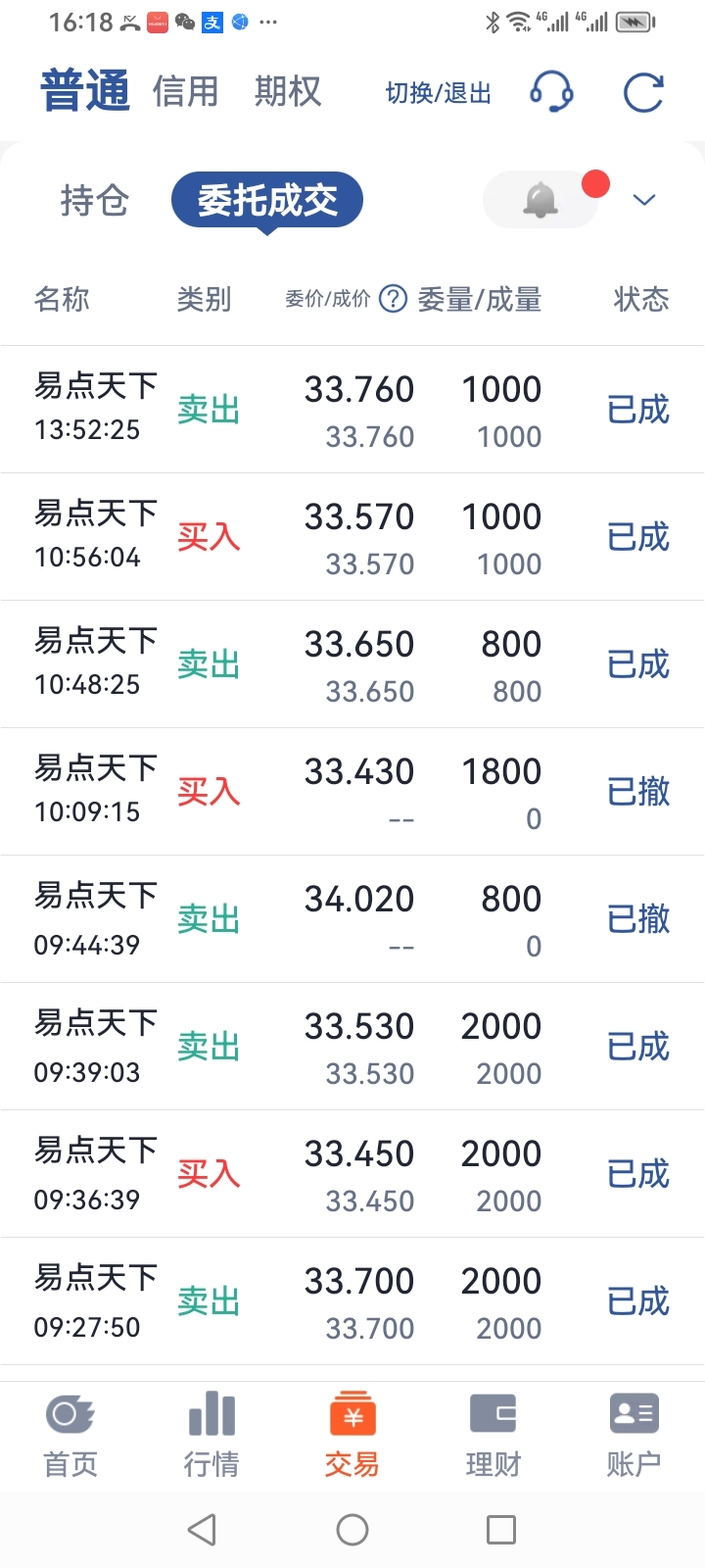 $易点天下(SZ301171)$ 今天还是老套路高抛低吸,回血了3000元,终于翻红了,坚持到底。