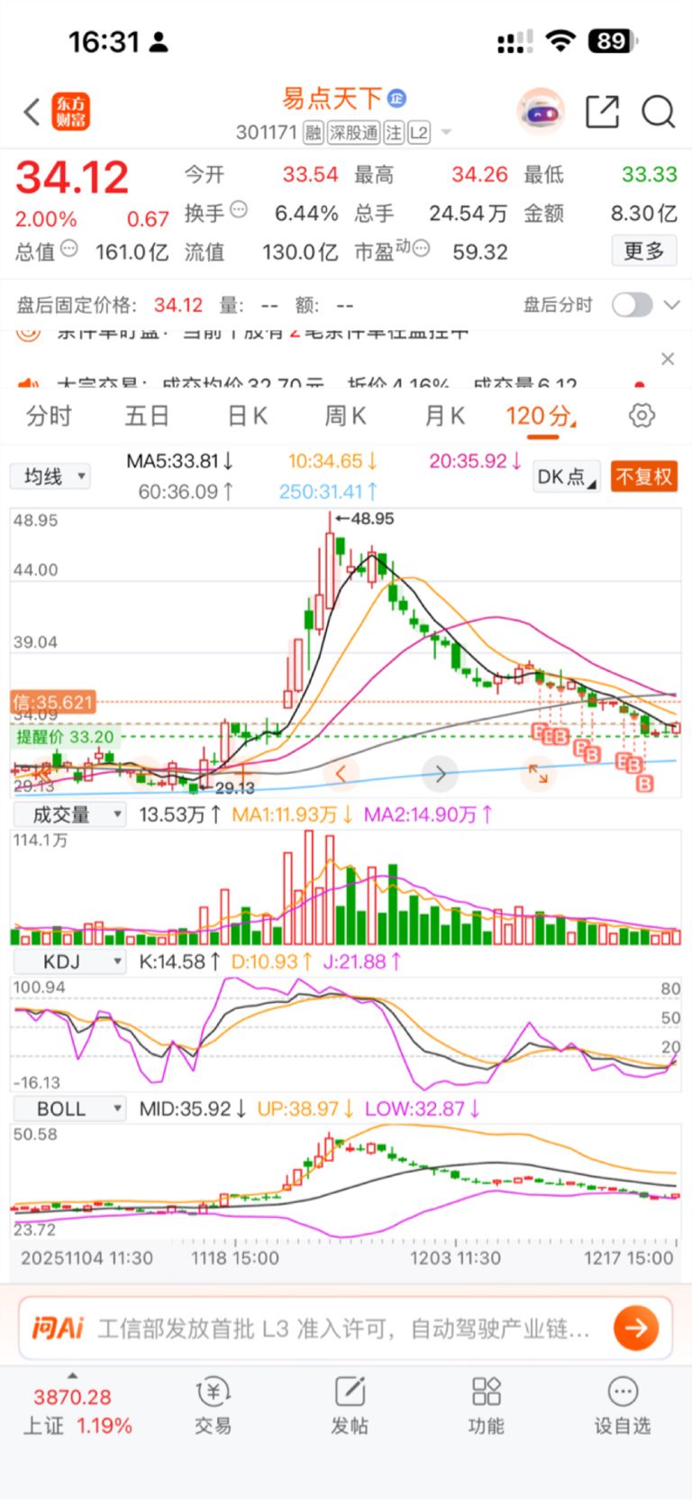 $易点天下(SZ301171)$ 这一波蚂蚁下树的操作连个做T机会都不给,好歹摸下5日线啊……只能躺平装孙子啦