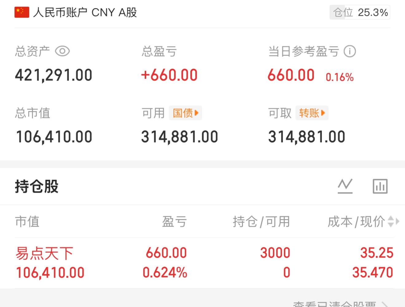 $易点天下(SZ301171)$ 20w再启炒股,实现财务自由之路,分享第143天.换平台说便宜点