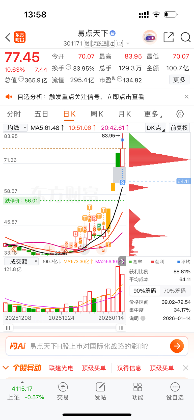 $易点天下(SZ301171)$ 尾盘接回来