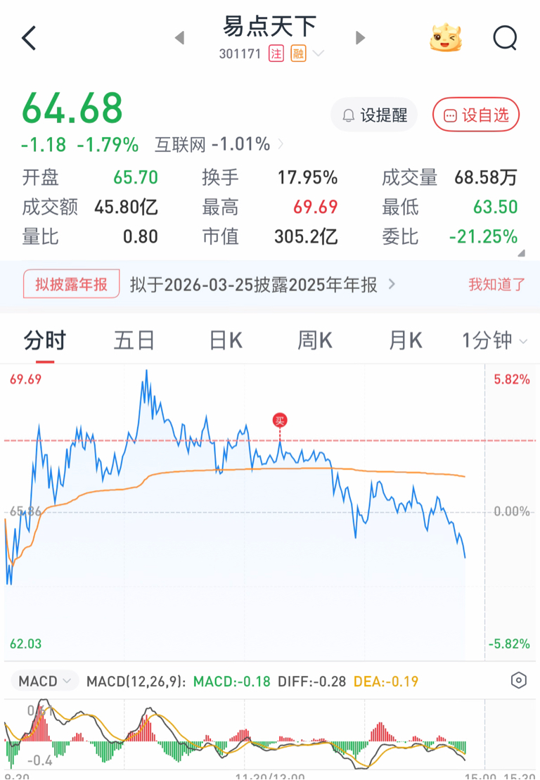 $易点天下(SZ301171)$ 最近买什么,什么跌