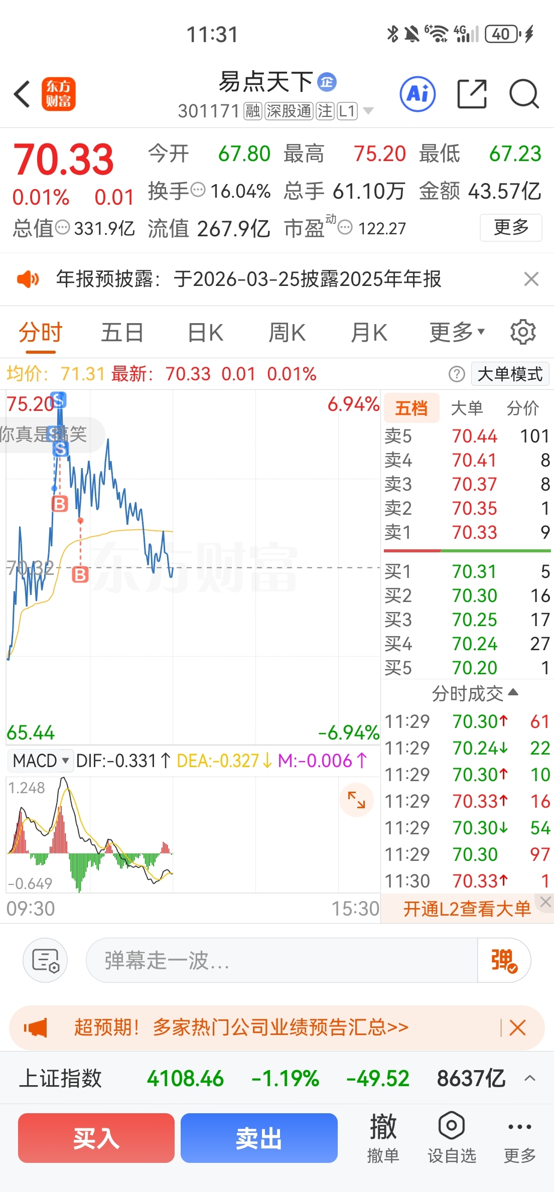 $易点天下(SZ301171)$ 因为今天有戏 心贪了接回来