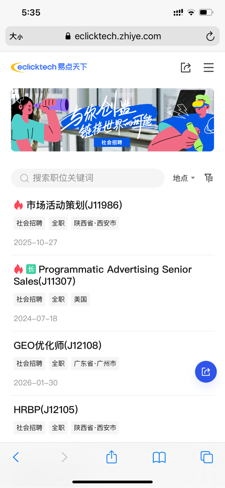 $易点天下(SZ301171)$ 看了官网确实有招聘GEO优化师,但是地点是广州。易点天下在广州有子公司么?而且是最新的招聘,是不是有业务新拓展。