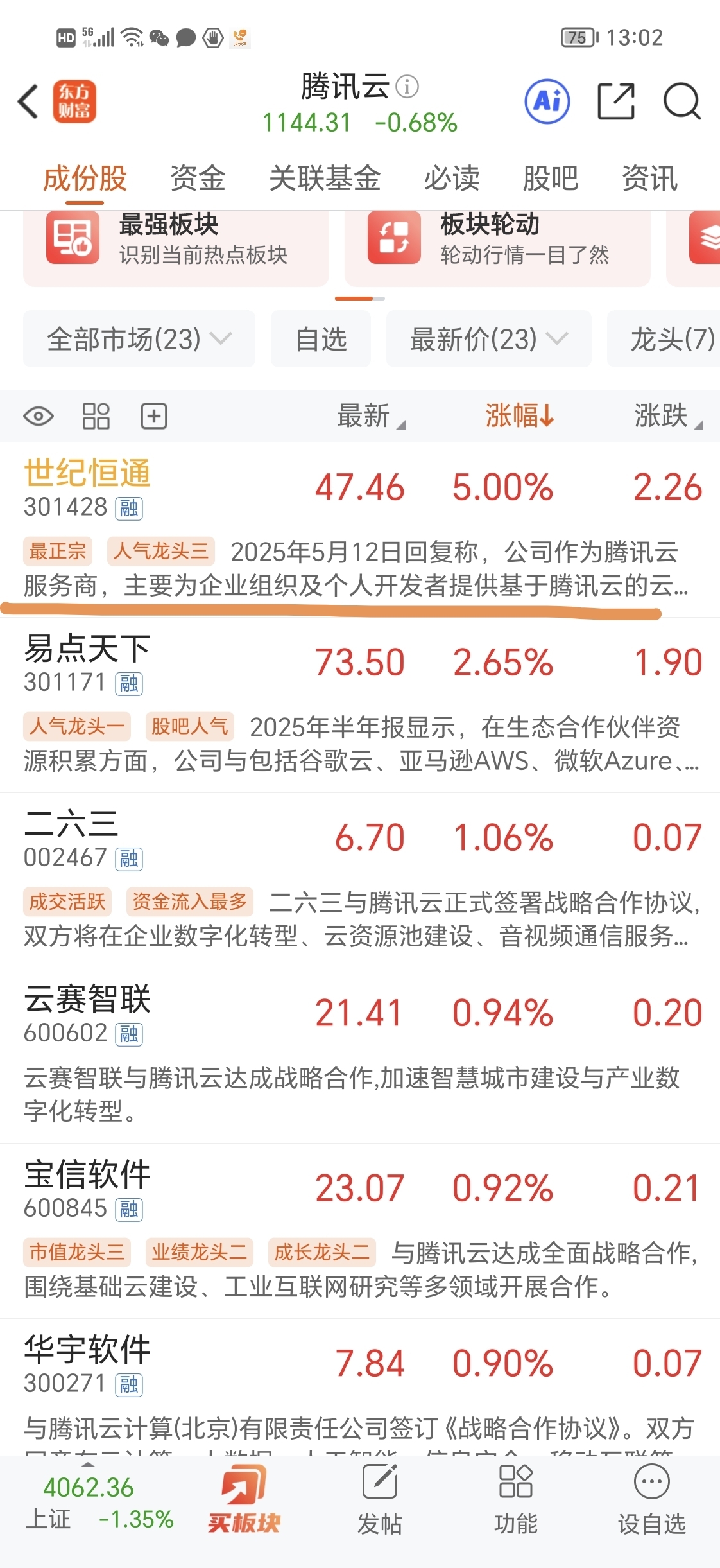 $易点天下(SZ301171)$ 大盘大跌1.4个点,大盘这么差我竟然今天用龙头思维买票了,前几天龙头思维很多票都大涨是因为大盘没有大跌。今天在这个时候出手,真是无语了。7个点成本。