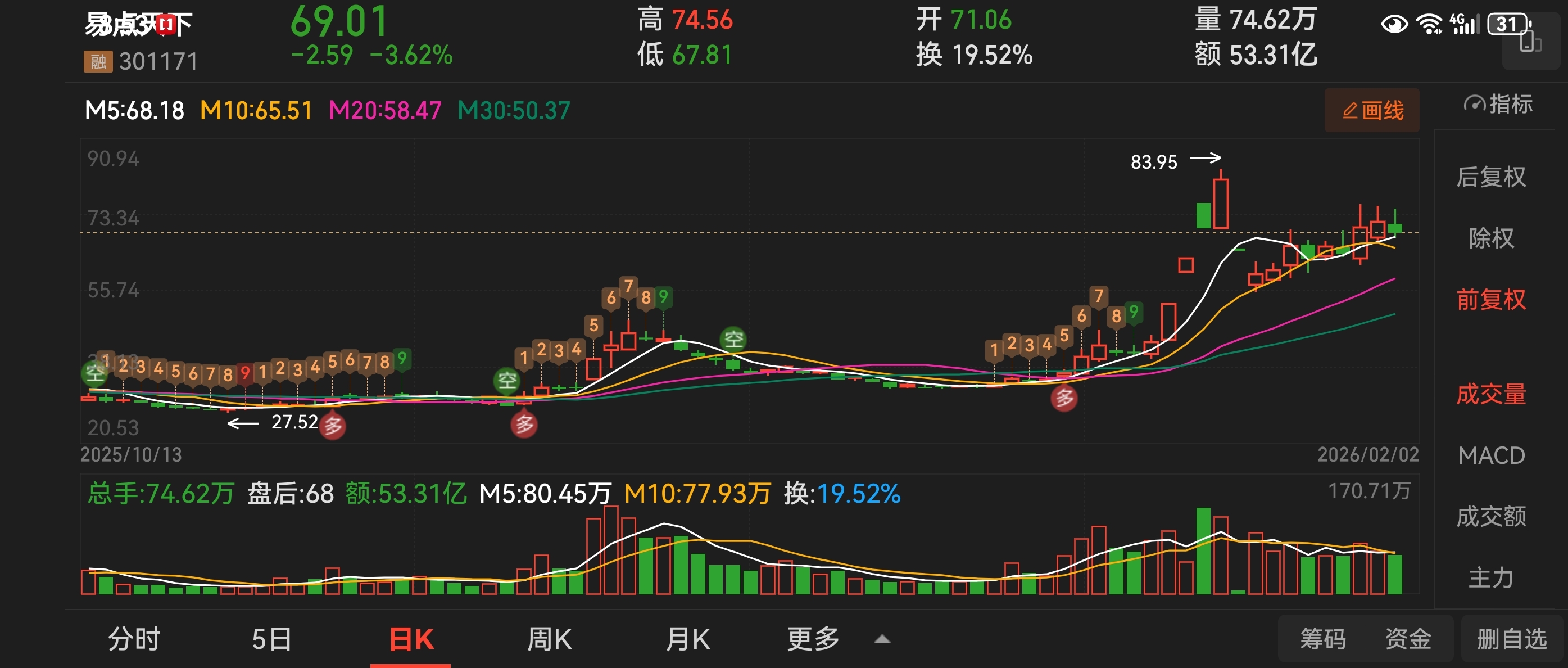 $易点天下(SZ301171)$ 关注,敢不敢破一下前高