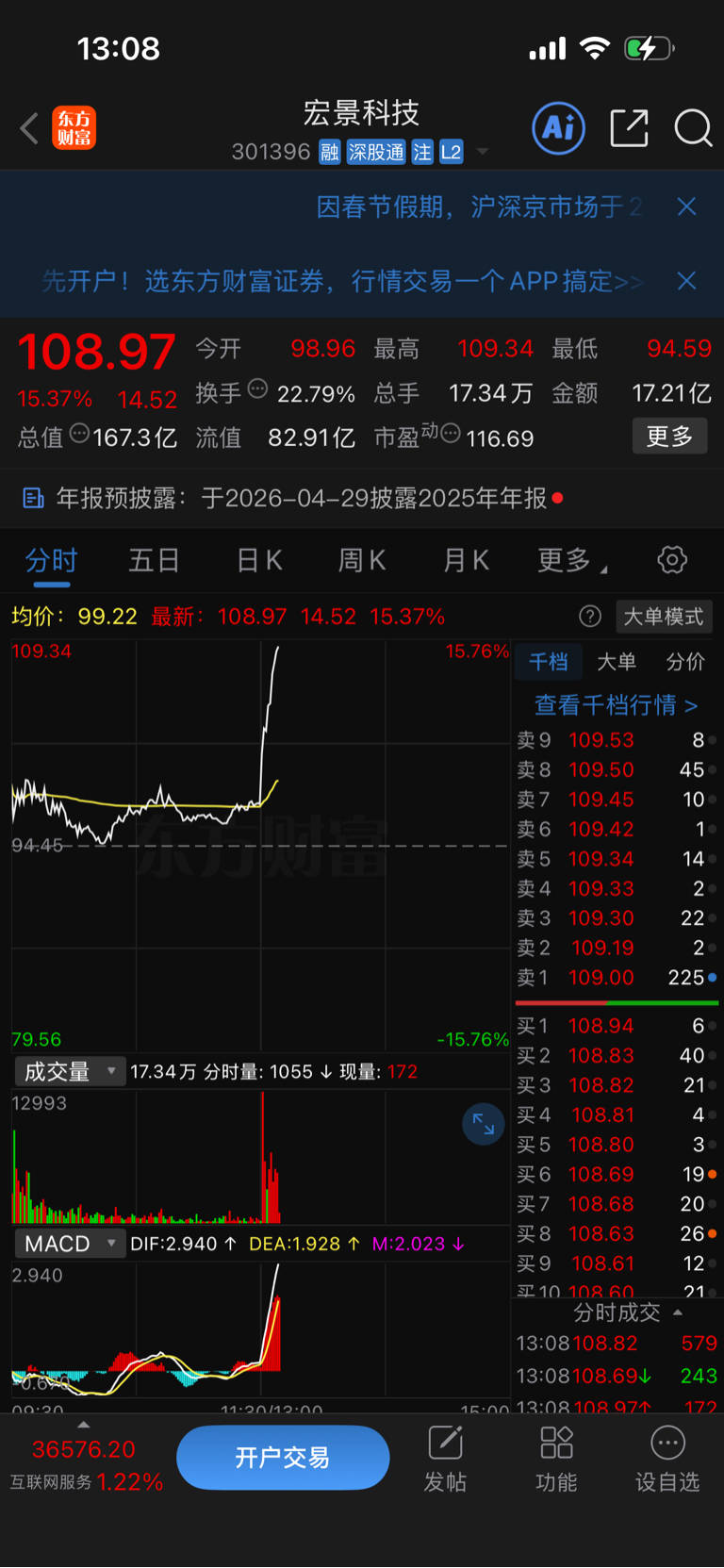 $易点天下(SZ301171)$ 腾讯云概念宏景科技涨13%了