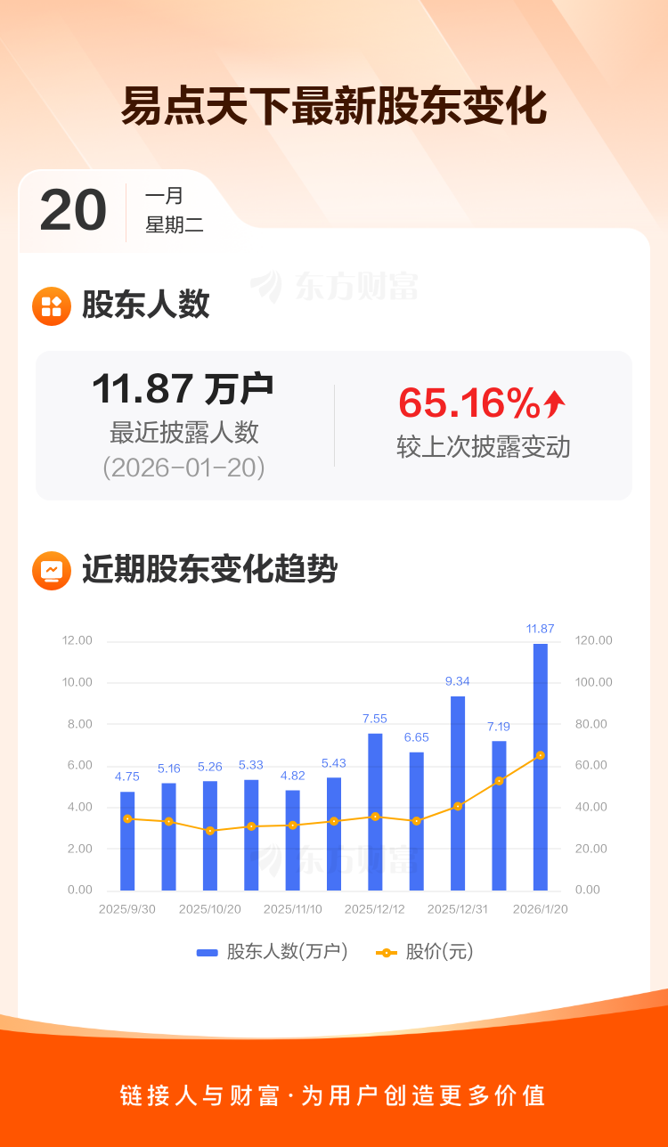 易点天下:截至1月20日最新股东户数11.87万户,较上期增加65.16%