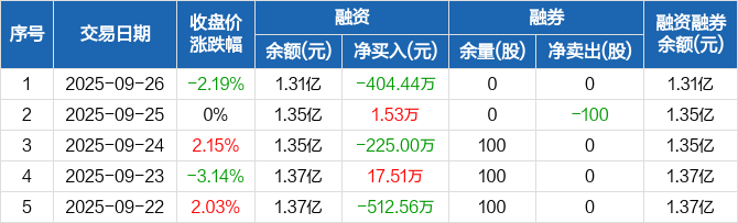 君逸数码:融资净偿还404.44万元,融资余额1.31亿元(09-26)