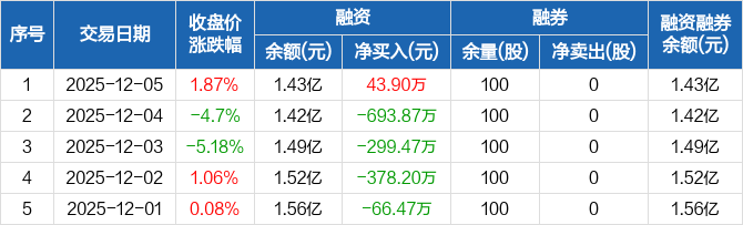 君逸数码:融资净买入43.9万元,融资余额1.43亿元(12-05)