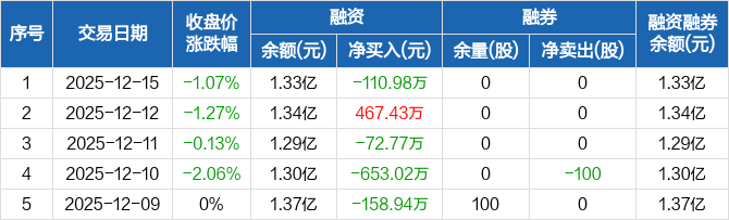 君逸数码:融资净偿还110.98万元,融资余额1.33亿元(12-15)