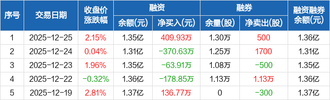 君逸数码:融资净买入409.93万元,融资余额1.35亿元(12-25)