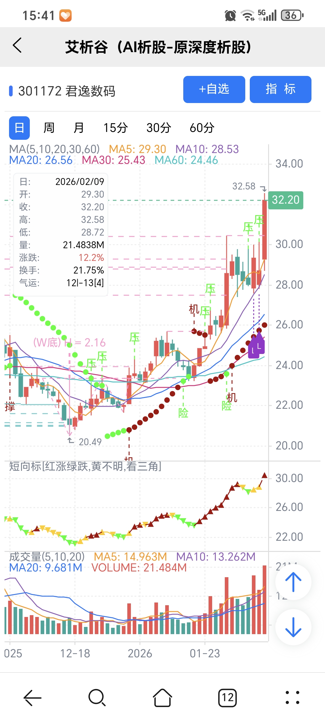 红绿小圆点是艾析谷的量化指标-艾短波,是趋势跟踪+突破类的量化指标,完全免费。