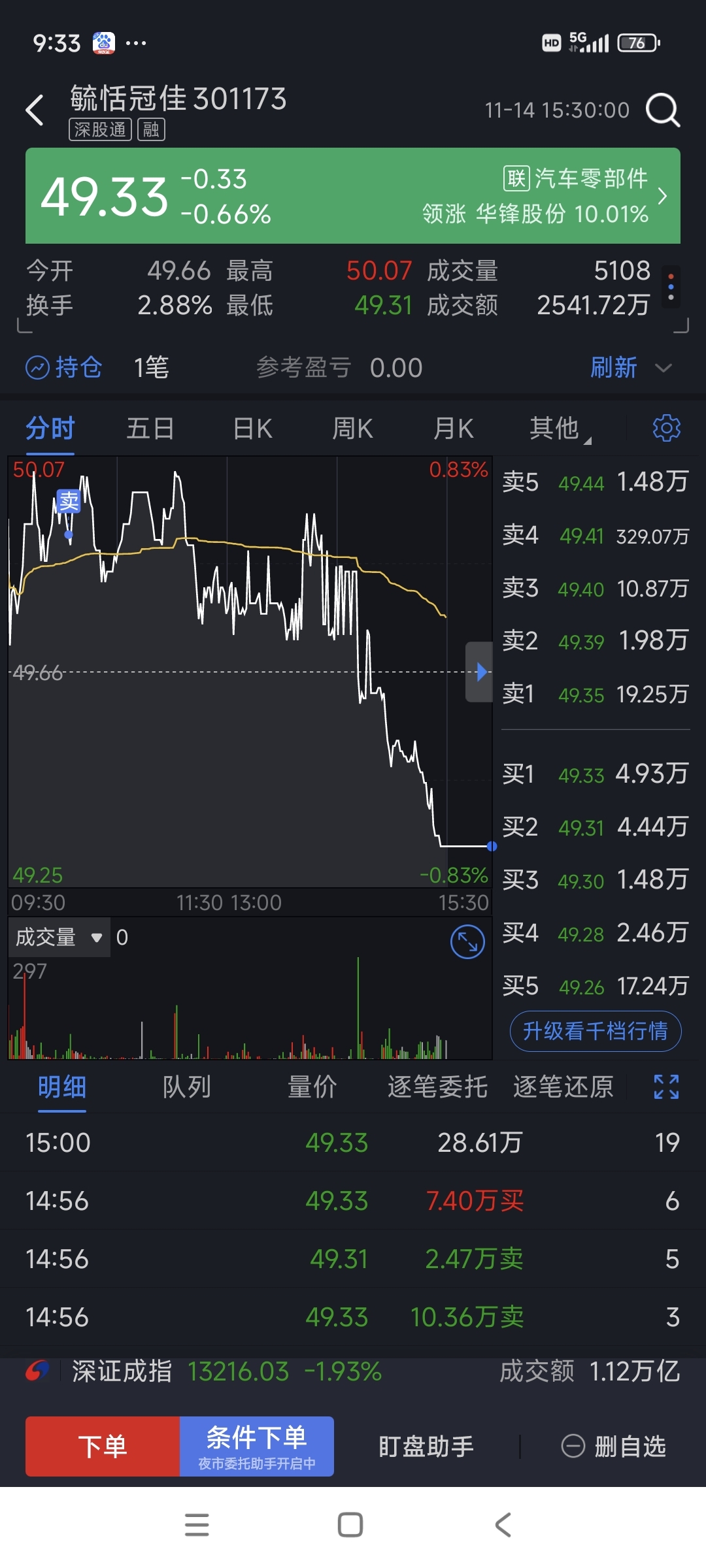 $毓恬冠佳(SZ301173)$ 今天清仓了