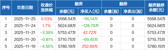 毓恬冠佳:融资净偿还56.14万元,融资余额5568.54万元(11-25)