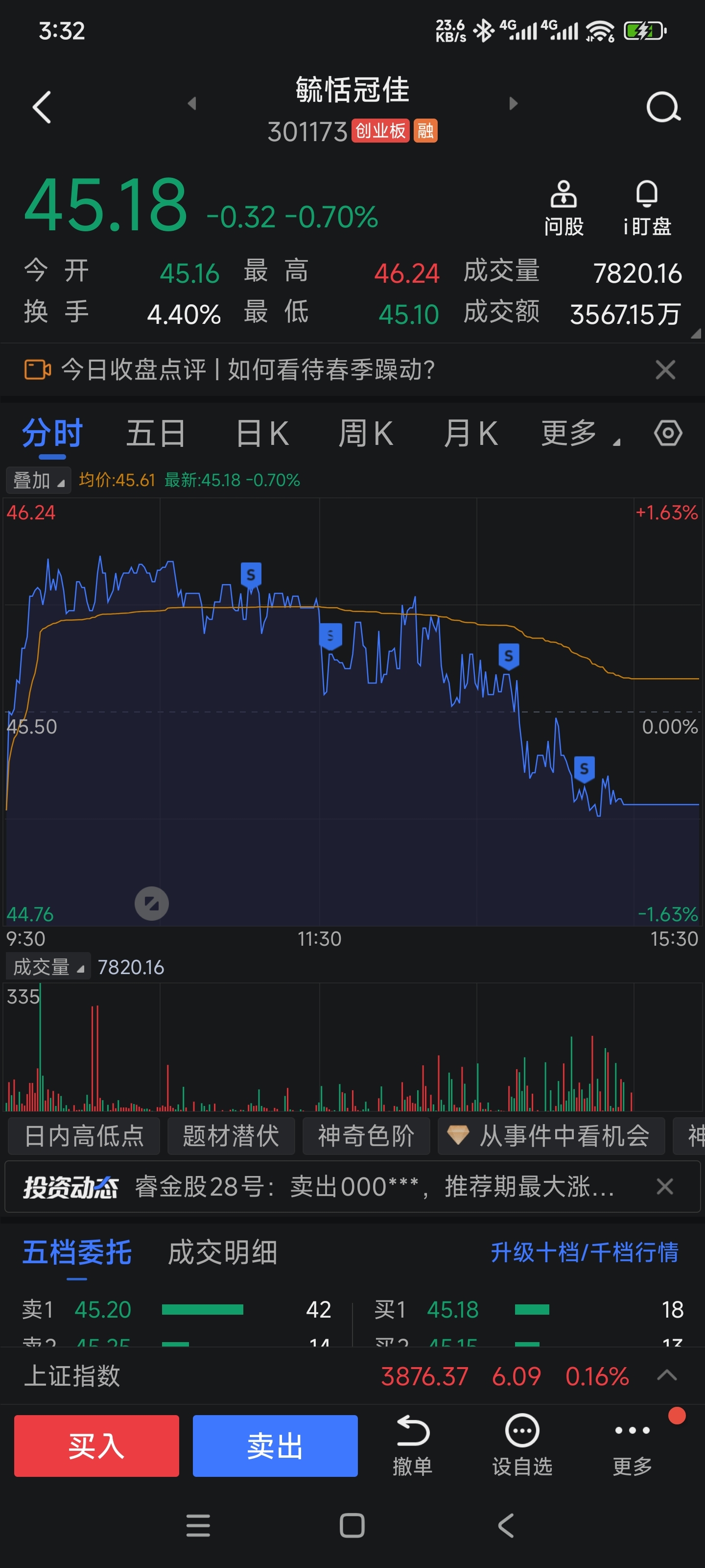 $毓恬冠佳(SZ301173)$ 我就是那天新来的,享受了几天,亏2个点走了确实不是人