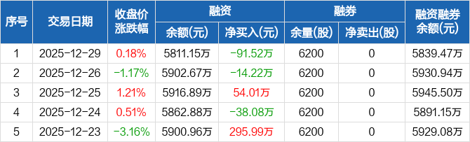 毓恬冠佳:融资净偿还91.52万元,融资余额5811.15万元(12-29)