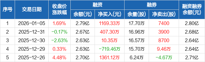 中科环保:融资余额2.79亿元,创历史新高(01-05)