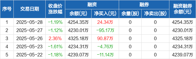 逸豪新材:融资净买入24.34万元,融资余额4254.35万元(05-28)