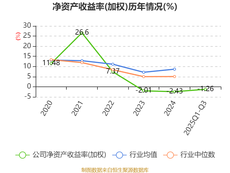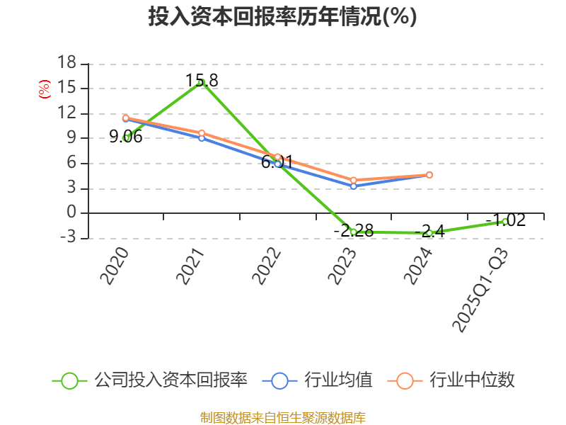 盈利能力方面, 2025年前三季度公司加权平均净资产收益率为-1.26%,同比下降0.36个百分点。公司2025年前三季度投入资本回报率为-1.02%,较上年同期下降0.26个百分点。
