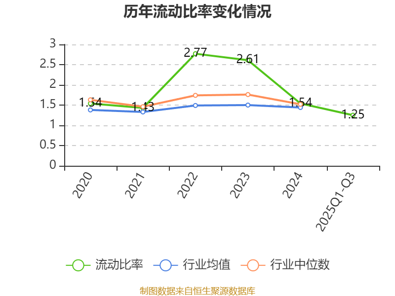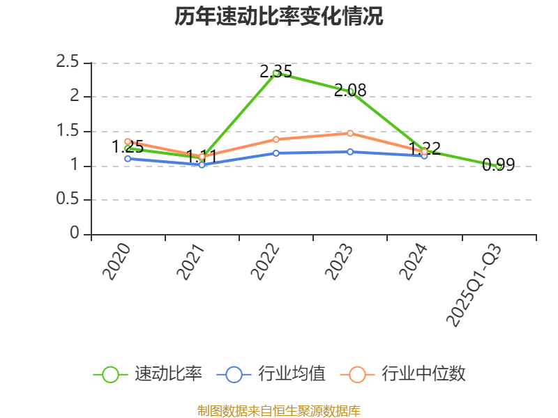 2025年前三季度,公司流动比率为1.25,速动比率为0.99。
