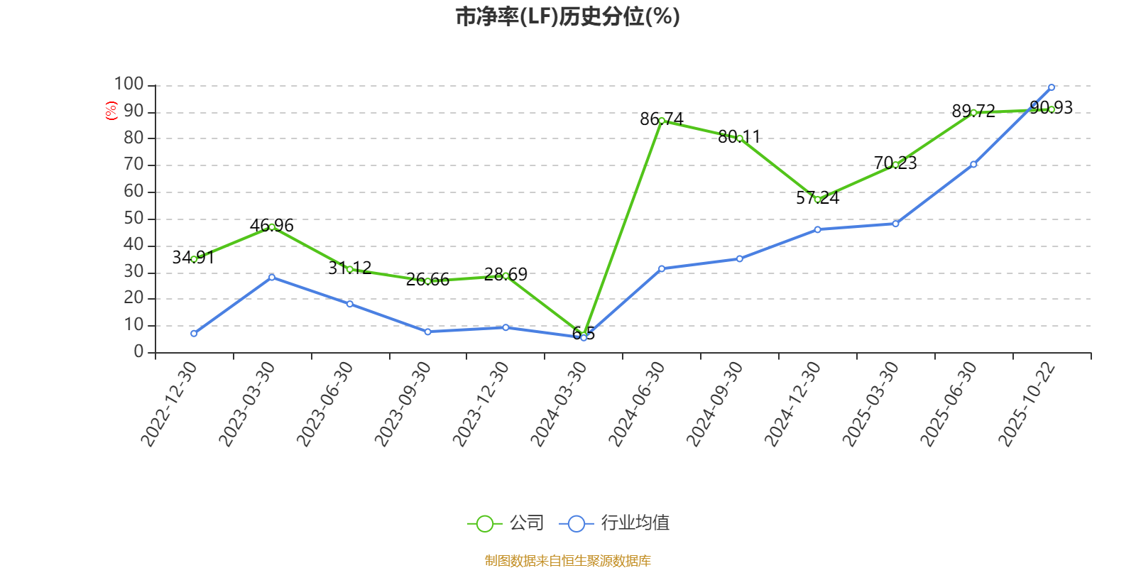 市盈率、市净率为负时,不显示当期分位数,会导致折线图中断。
