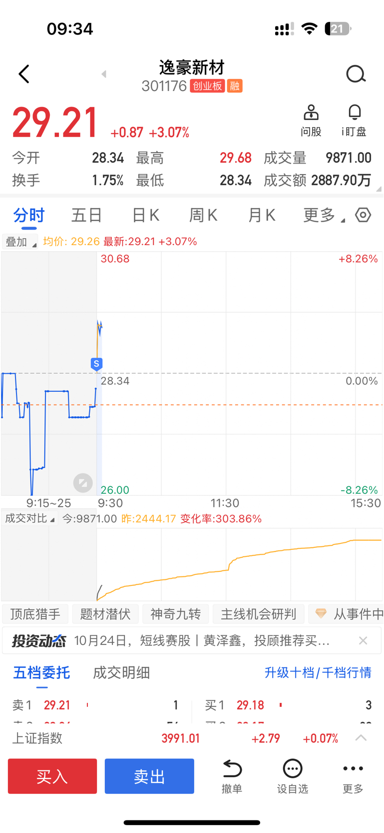 $逸豪新材(SZ301176)$ 35买的,终于回本走了一大半,最后一点点了!昨天夜里挂好的单,有时候真的无力,没有赚钱的命啊