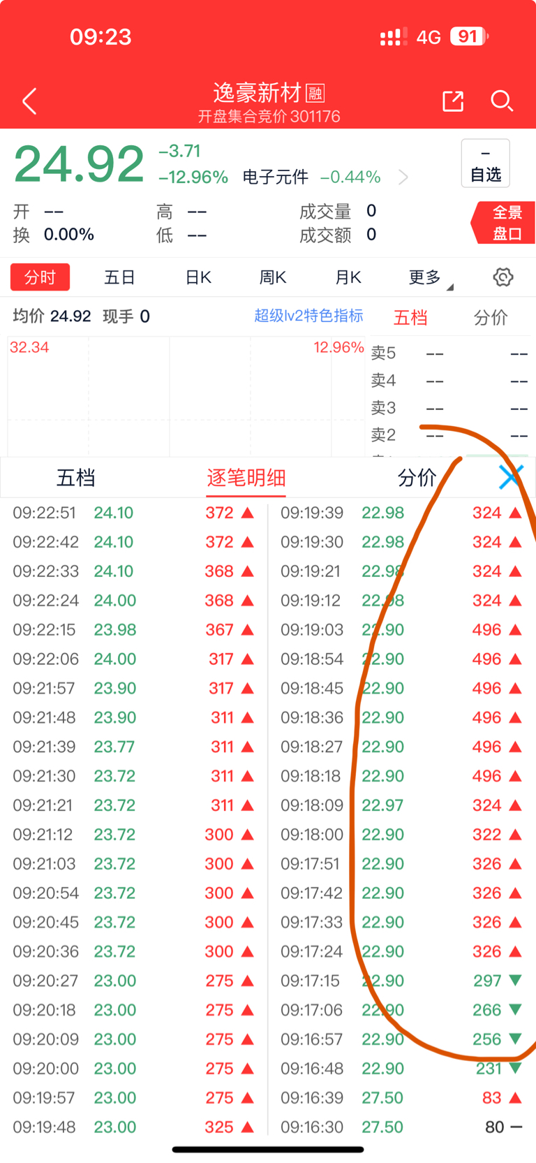 $逸豪新材(SZ301176)$ 有成交,看着数字有毛病