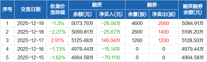 逸豪新材:融资净偿还26.06万元,融资余额5073.76万元(12-19)