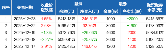 逸豪新材:融资净买入246.61万元,融资余额5413.13万元(12-23)