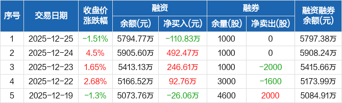 逸豪新材:融资净偿还110.83万元,融资余额5794.77万元(12-25)
