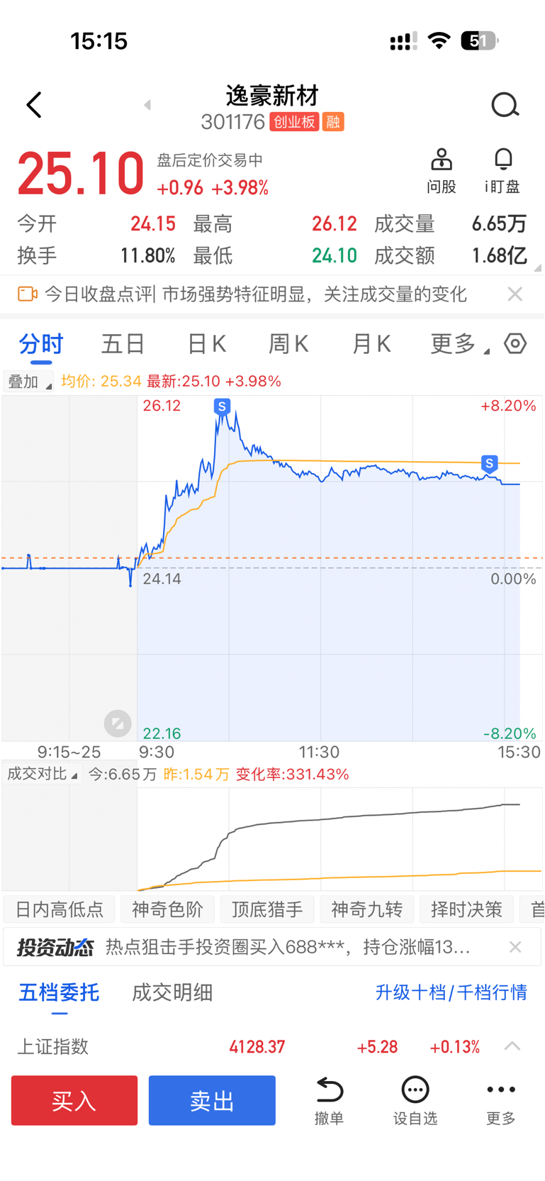 $逸豪新材(SZ301176)$ 分手吧,35 36做到现在,算了累了,拜拜!快200天。每次一根上影线,然后又是无休止的等,烦了,赚点买菜钱算了