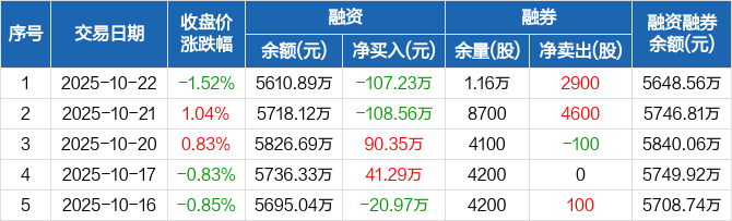 迪阿股份:融资净偿还107.23万元,融资余额5610.89万元(10-22)