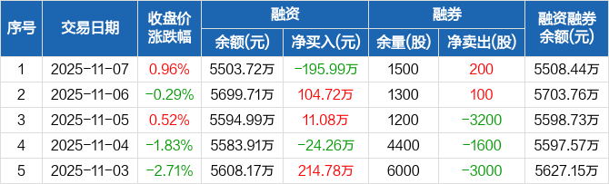 迪阿股份:融资净偿还195.99万元,融资余额5503.72万元(11-07)