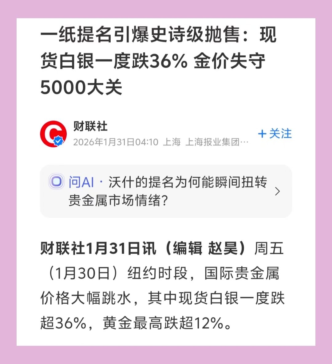 历史上第一次黄金白银全部跌熔断大家一定要警惕网上/抖音/小红书那些所谓的专家/老