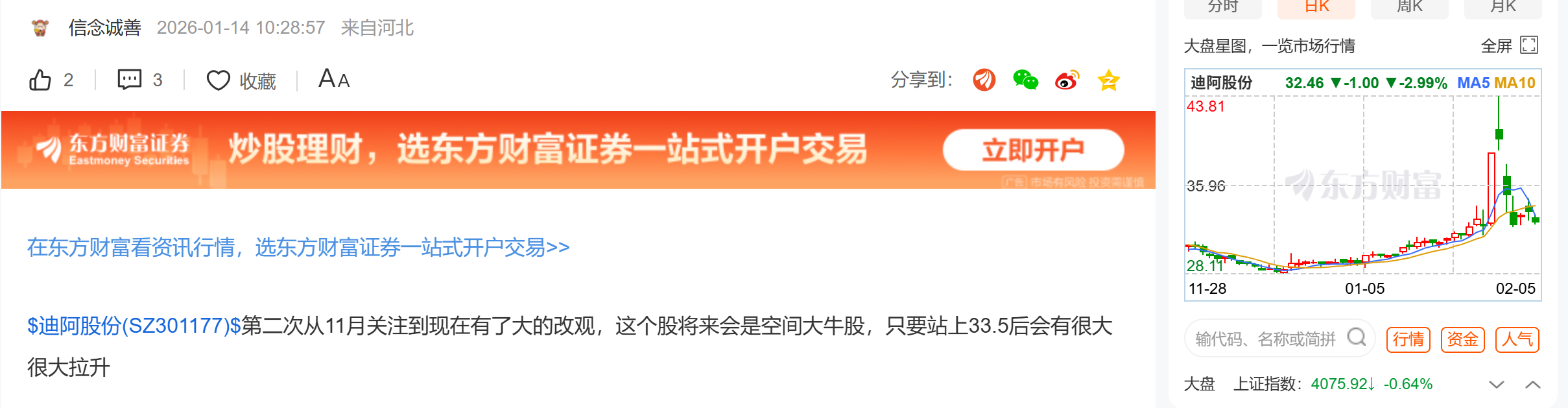 温馨提示: 1.根据《证券法》规定,禁止编造、传播虚假信息或者误导性信息,扰乱证券市场;2.用户在本社区发表的所有资料、言论等仅代表个人观点,与本网站立场无关,不对您构成任何投资建议。用户应基于自己的独立判断,自行决定证券投资并承担相应风险。《东方财富社区管理规定》