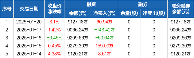 天亿马:融资净买入60.94万元,融资余额9127.18万元(01-20)