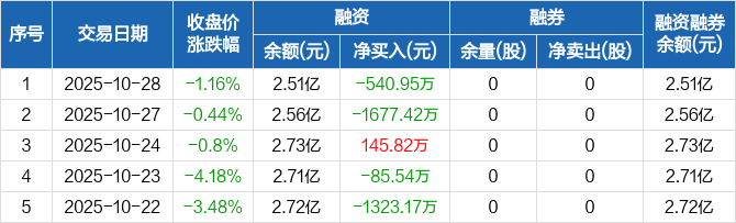 天亿马:融资净偿还540.95万元,融资余额2.51亿元(10-28)