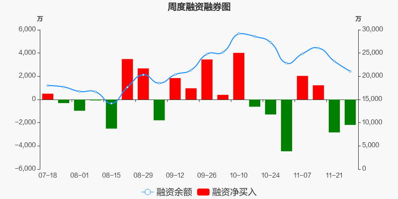 天亿马本周(2025/11/24-2025/11/28)累计涨幅达3.17%,截至11月28日最新股价报收53.62元。从增量上来看,11月24日至11月27日融资买入交易规模4378.46万元,融资偿还规模6568.39万元,期内融资净偿还2189.92万元。从存量上来看,截止11月30日,天亿马融资融券余额2.11亿元,其中融资余额规模2.11亿元,融券余额规模0元。