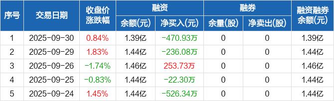 泽宇智能:融资净偿还470.93万元,融资余额1.39亿元(09-30)