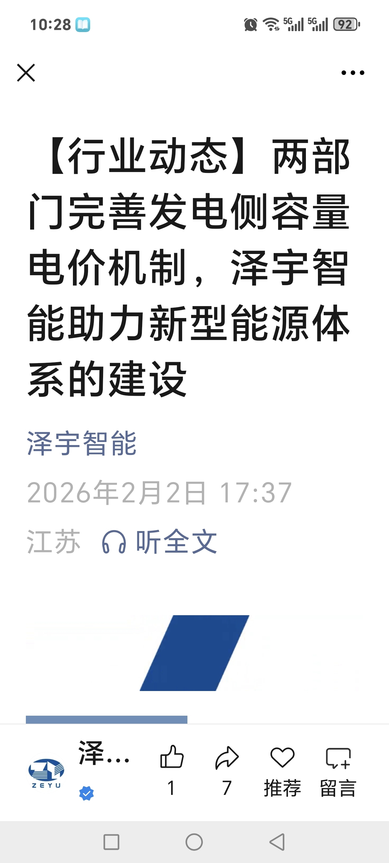2026年2月2日泽宇智能在微信公众号的信息见下图