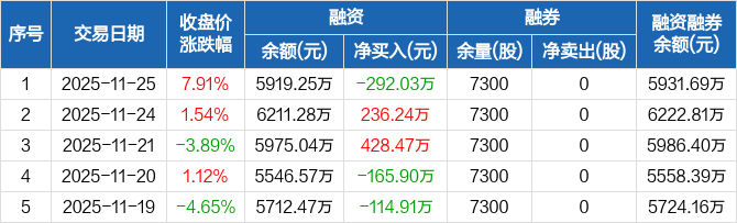 万祥科技:融资净偿还292.03万元,融资余额5919.25万元(11-25)