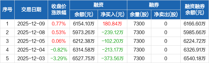 万祥科技:融资净买入180.84万元,融资余额6154.1万元(12-09)