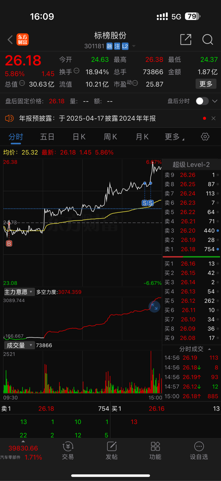 $标榜股份(SZ301181)$ 做个T吧