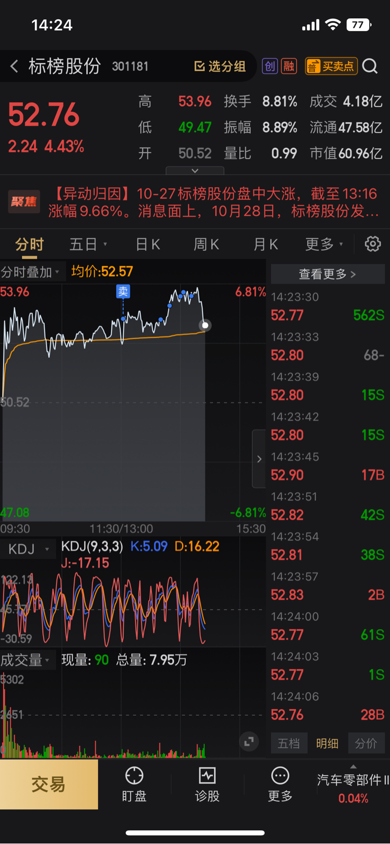 $标榜股份(SZ301181)$ 止盈靠决心。